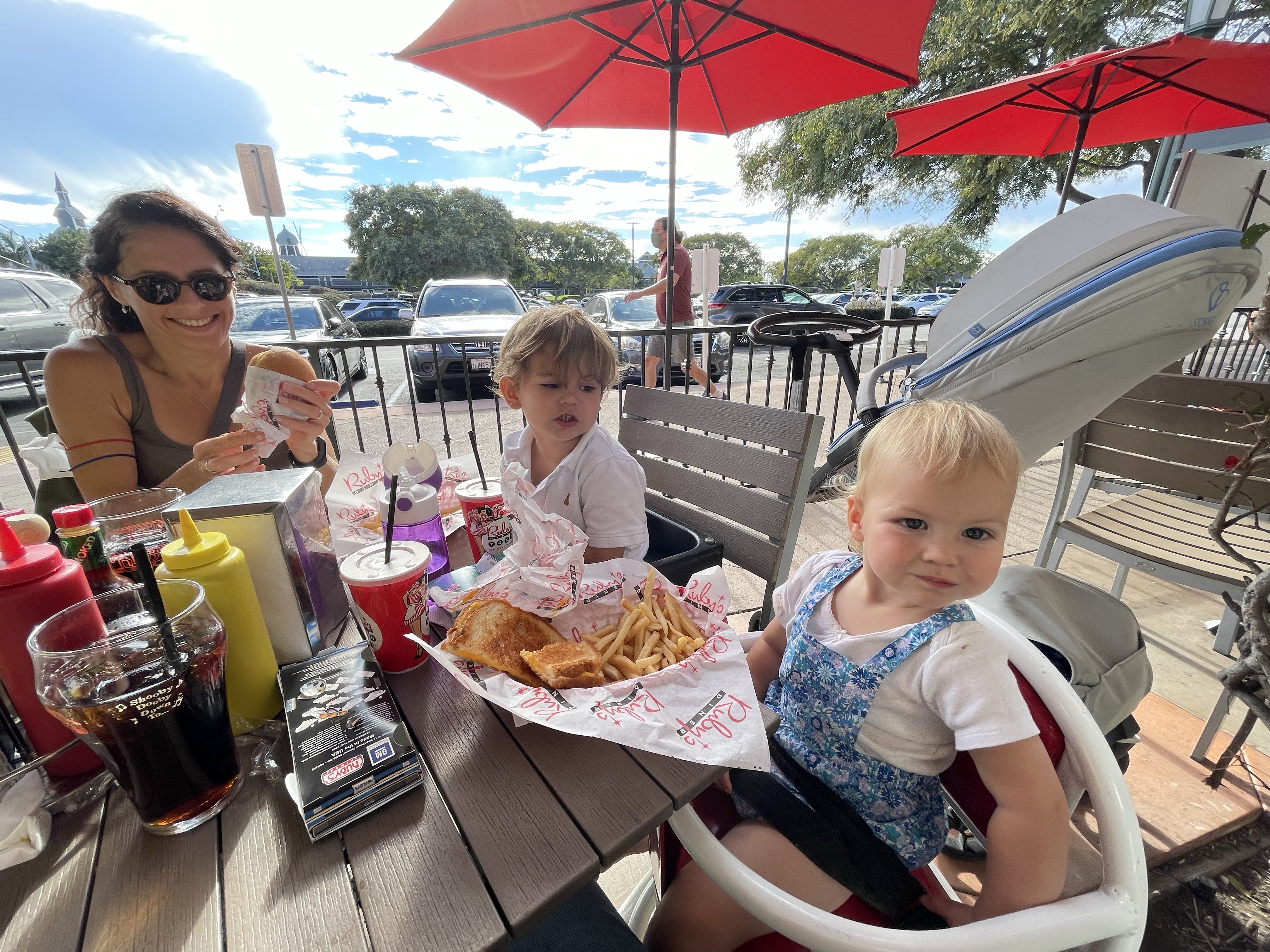 Mardi, la journée est consacrée aux enfants! Nous profitons et jouons tous les trois dehors (pendant que Guillaume travaille!)