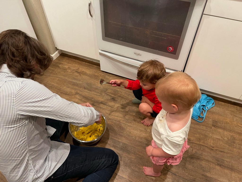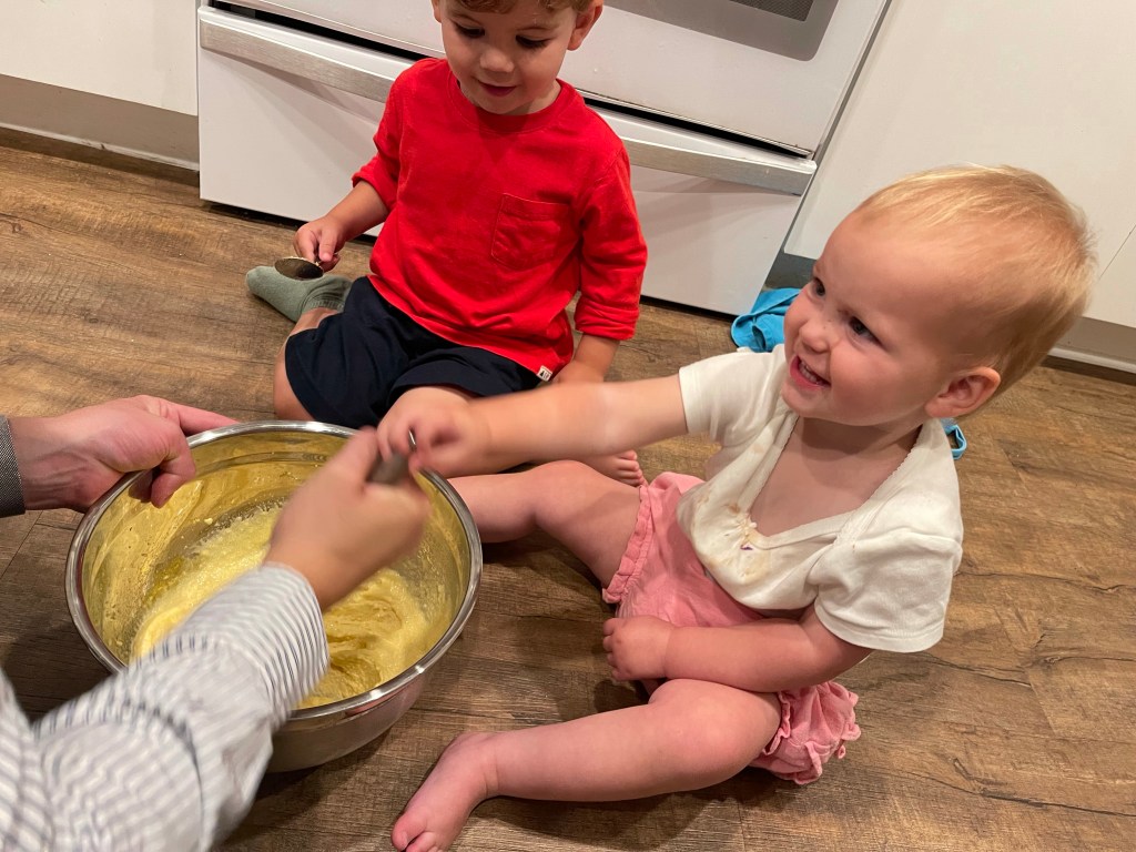Eleonore nous a alors parlé de Gâteau puis Gabriel s’y est mis et de retour à la maison, Guillaume n’a pas pu résister au charme de sa petite fille d’amour et à donc cuisine un gâteau avec ses enfants!