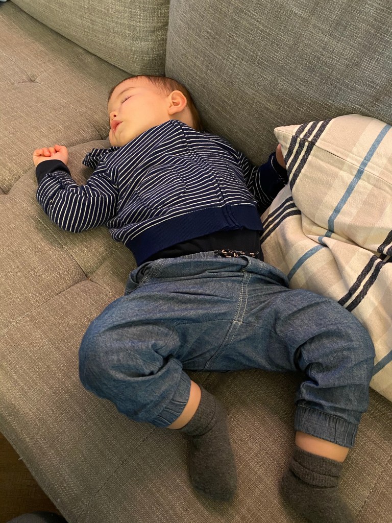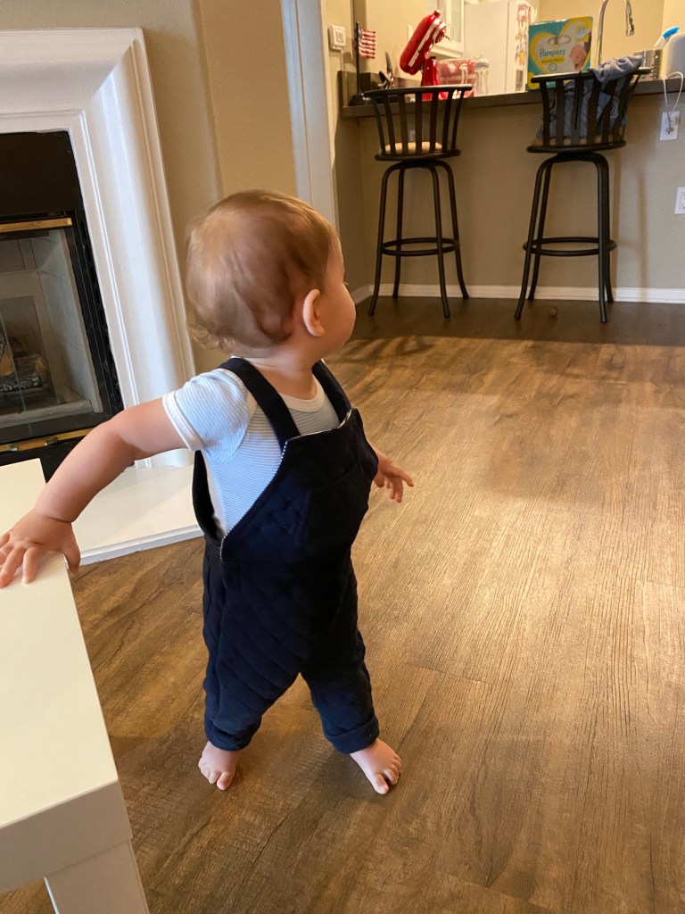 On ne peut pas dire vraiment premiers pas parce qu’il nous en avait déjà fait 2 ou 3 comme ça pour essayer mais dimanche monsieur Gabriel s’est vraiment entraîné à marcher seul plusieurs fois de façon répété!