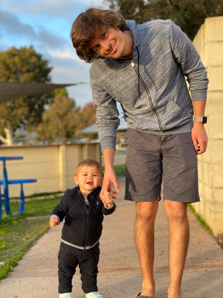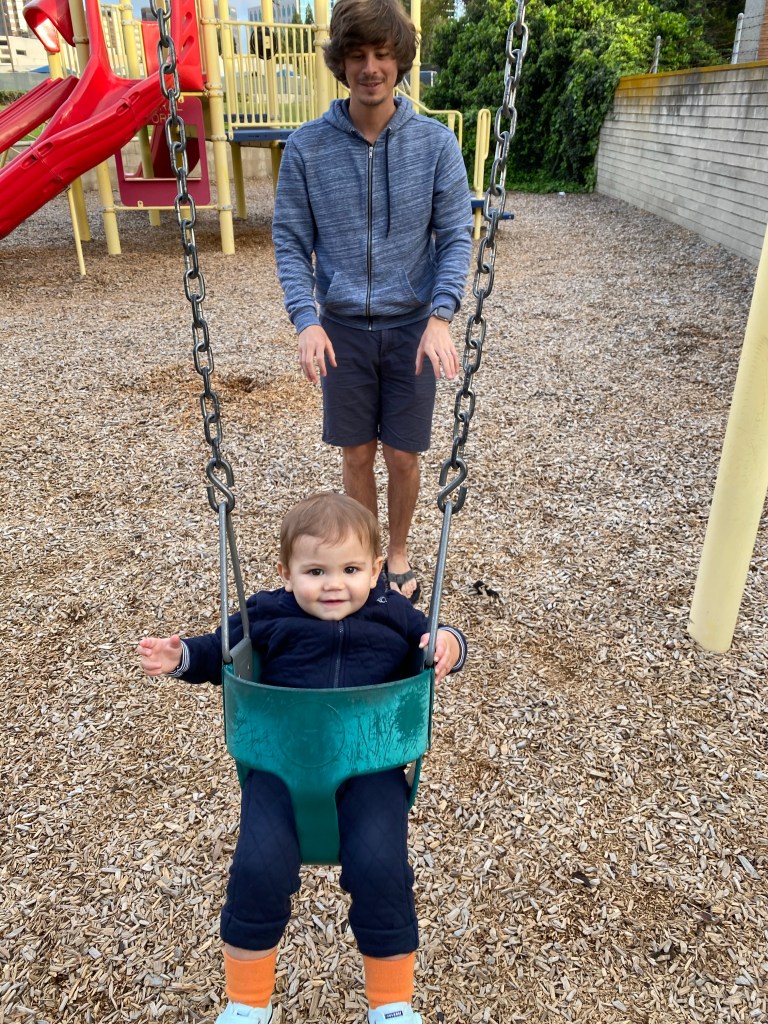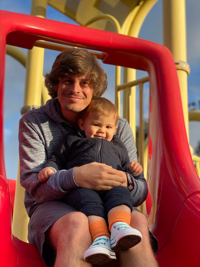 Œufs brouillés et avocat! Il ne manque plus que la tortilla et c’est Kono’s tous les jours! Gabriel fait un bisous à son papa pour lui dire merci! Ils jouent au train duplo Gabriel joue à cache cache