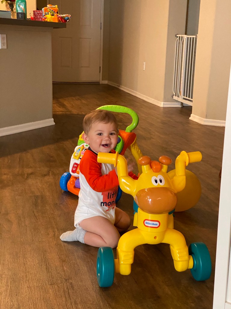 Comme Gabriel veut se déplacer tout le temps, Guillaume a investi dans un youpala pour qu’il puisse bouger sans qu’on soit à l’affût de ses moindres faits et gestes!