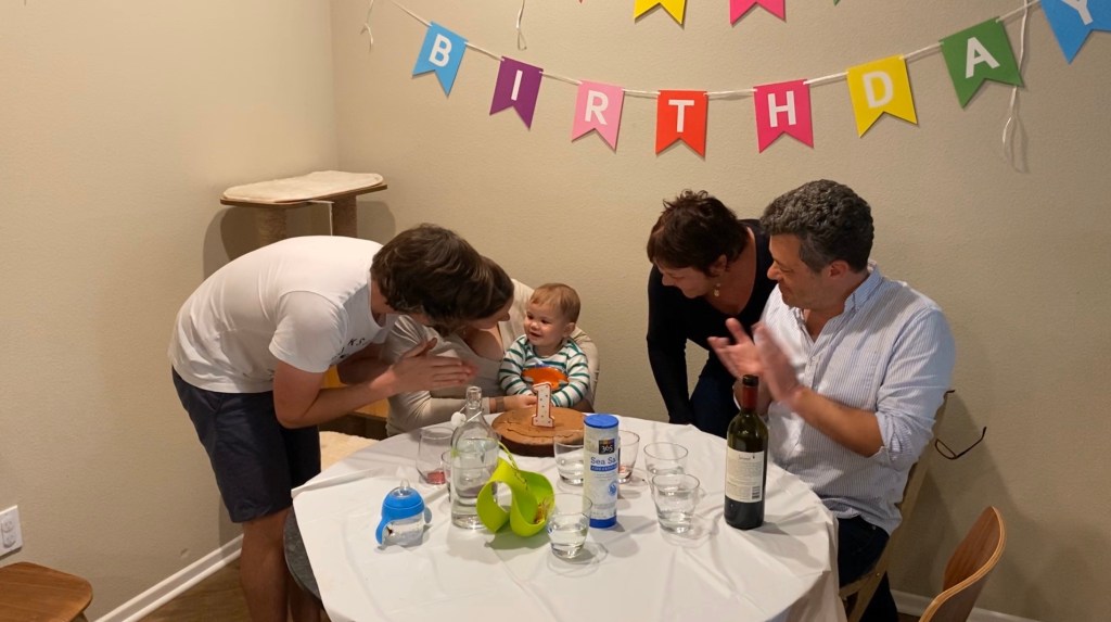 Comme je ne voulais pas que Gabriel passe son premier anniversaire tout seul, ses grands-parents et son tonton son venus spécialement pour cette occasion!