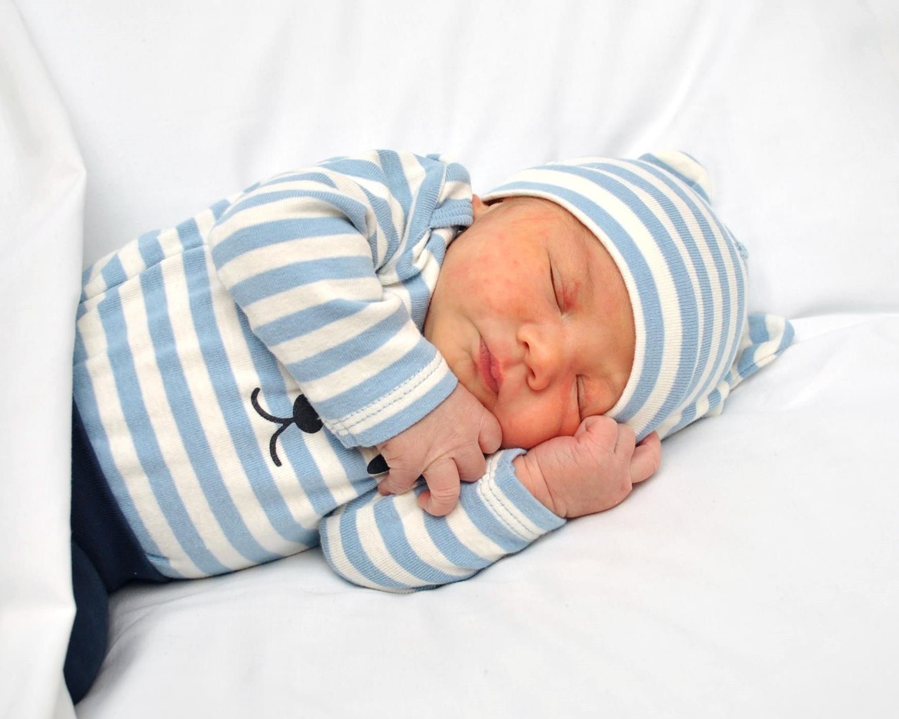 Il pèse 5,7 kg et mesure 61,6 cm ! Seul petit « problème » à corriger : son crâne s’aplatit et donc il va falloir faire davantage de tummy time (position sur le ventre) sous la surveillance des parents bien entendu !!!