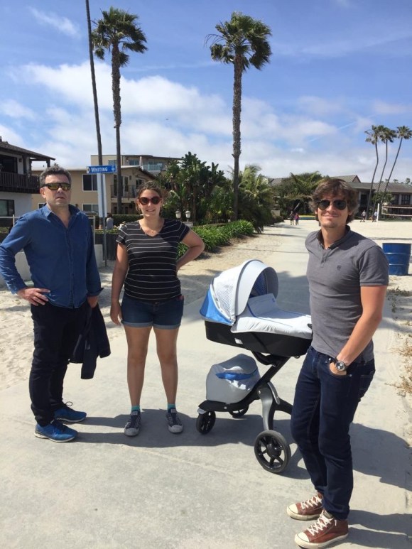 Dimanche, le soleil se montre enfin! Qui dit soleil et weekend dit….. ballade à la plage!!!! Nous préparons notre super sac à langer et nous partons à Pacific Beach! Qui dit Pacific Beach le matin dit forcément Kono’s!!! Petit déjeuner en bord de plage! Puis nous nous promenons avec Coline et Scotty qui nous ont rejoint! Nous passons un très bon moment. L’après-midi se finit chez Alexandra (et oui encore) pour prendre un café. C’était une très longue ballade et ma cicatrice est très douloureuse mais ça a fait tellement de bien au moral que je m’en fiche! Nous recevons également notre baby caméra. En effet, quand Gabriel est dans la chambre et que nous faisons des choses nous ne l’entendons pas comme il ne pleure pas, et je trouve qu’il fait très froid dans sa chambre et je veux vérifier la température avant de l’y mettre (et là vous vous dites quel est le rapport entre caméra et température hein?) Nous avons choisi une caméra qui check également la température, la qualité de l’air et l’humidité dans la pièce où elle est installée! Comme ça me voilà rassurée! Le dimanche soir nous décidons de laisser Berlioz dormir avec nous dans la chambre, enfin une bonne nuit!!