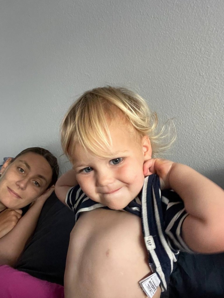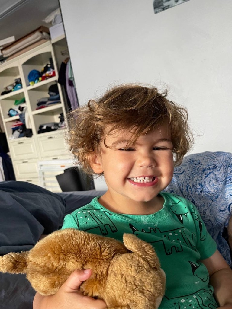 Il se réveille tout patraque et encore plein de fièvre donc nous prenons un petit bain tiède (pas bon pour la planète mais en même temps je ne vais pas laisser le cerveau de mon bébé bouillir si je peux l’éviter…)