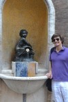 Nous admirons ensuite les restes du Portico d’Ottavia, portique construit par Auguste pour sa soeur, puis qui sera repris au Moyen-Âge et transformé en église. Sur le même site, se trouve également les restes du Teatro di Marcello que nous retrouverons plus loin d’après Guillaume. Nous continuons donc au travers des rues de l’ancien ghetto, et le guide nous fait remarquer que les bâtiments situé à gauche de la rue ont l’air plus récent que ceux situés à droite. Ce constat s’explique par le fait qu’après 1888, les conditions d’hygiènes ayant été trop mauvaises dans le ghetto, les bâtiments ont été rasé et reconstruit à neuf! Sur le trottoir de droite, nous remarquons une maison ayant été construite en 1497 et qui n’a jamais été rénové, la casa di Lorenzo Manilio. Sur la façade, on note des inscriptions latine d’origine. Quelques pas plus tard, nous tombons nez à nez avec une fontaine qui porte le nom de Fontana elle Tartarughe et bien évidemment qu’est ce qu’il y a sur cette fontaine? des tortues! Guillaume est trop content! Elle a été construite d’après les plans de Giacomo della Porta (un peu de culture tout de même!). Et nous voilà presque à la fin de cette ballade (mais encore très loin de la fin de la journée!!). Nous retournons au Teatro di Marcello que nous apercevons beaucoup mieux de ce côté ci et nous pouvons également regarder les trois colonnes restantes du tempo di Apollo Sosiano. le théâtre a été érigé entre treize et onze avant Jésus-Christ et il fut dédié au neveu d’Auguste, Marcellus.