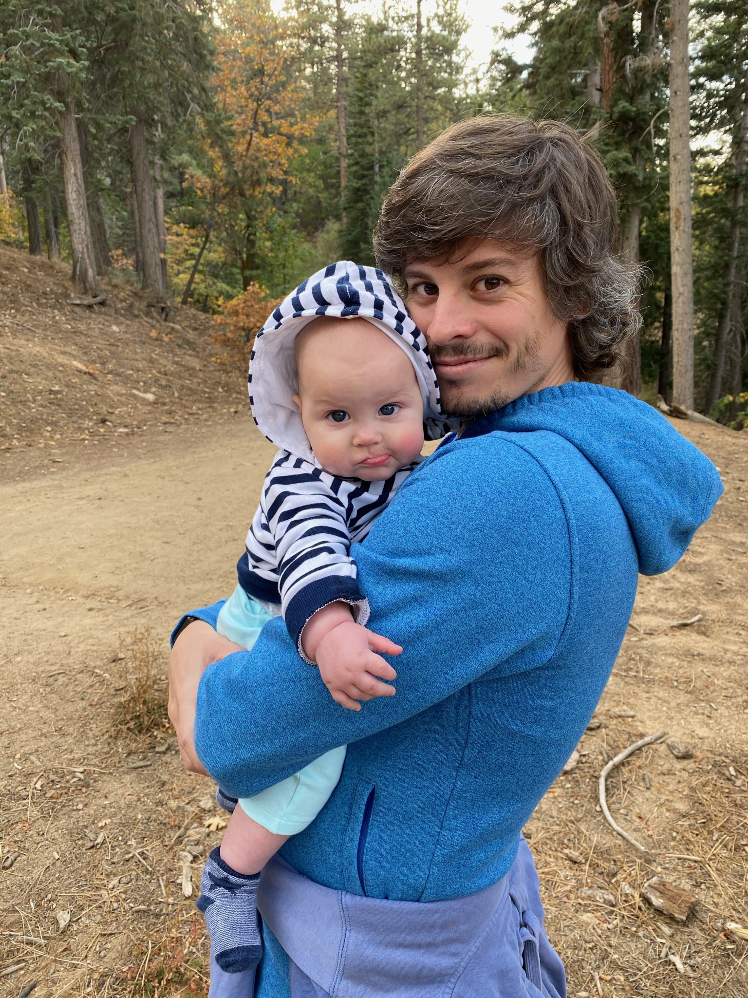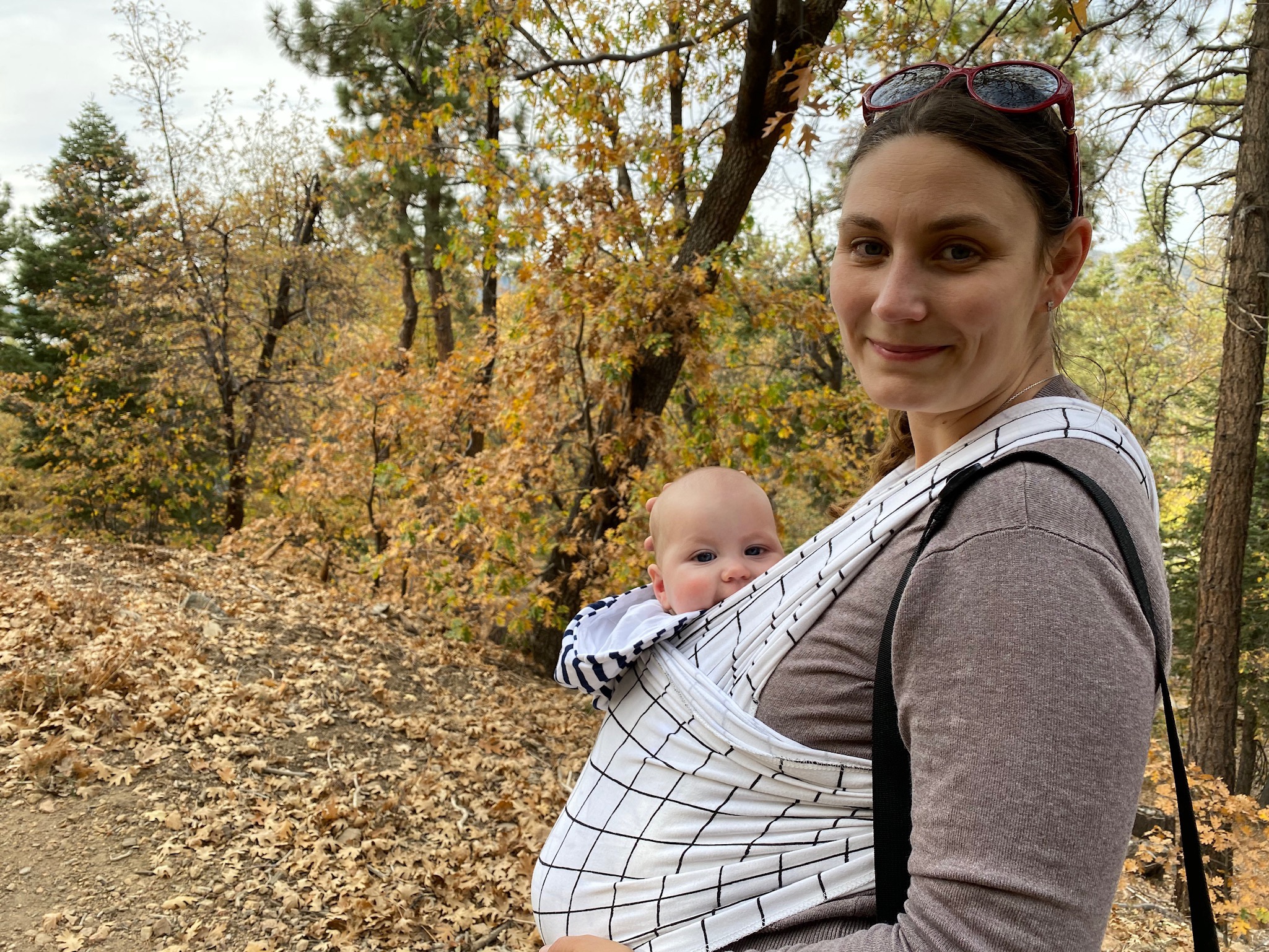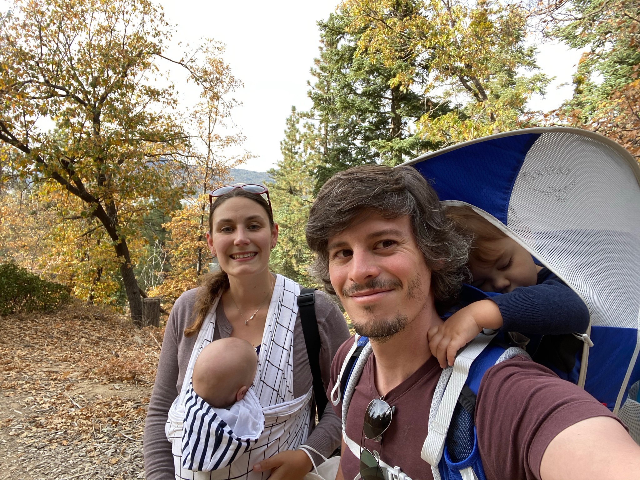 Une super promenade pendant laquelle Gabriel a même marché, motivé par le fait de trouver des pommes de pin sur la route!