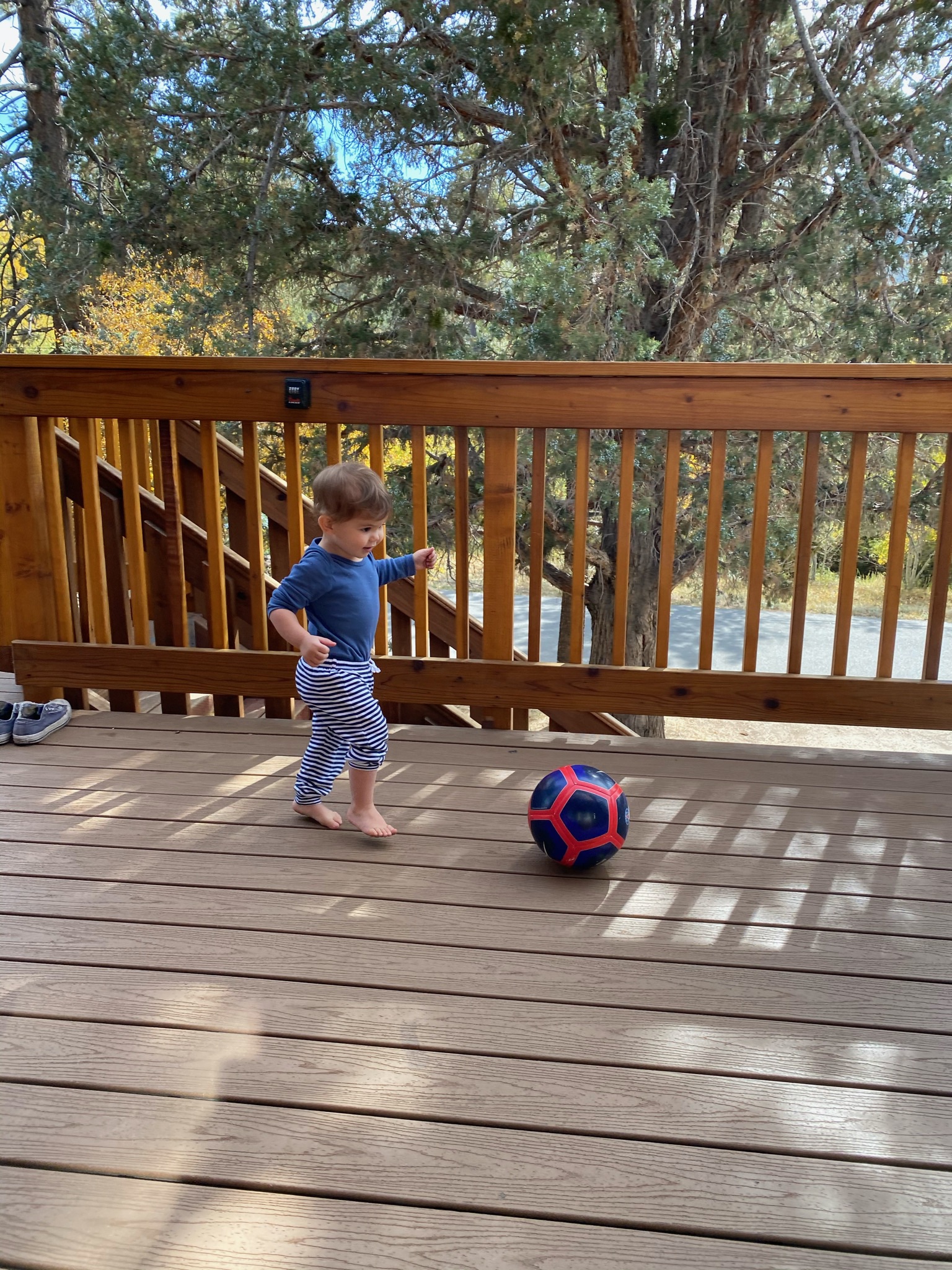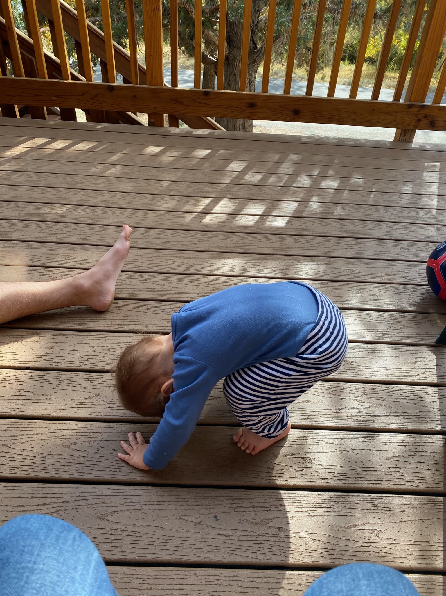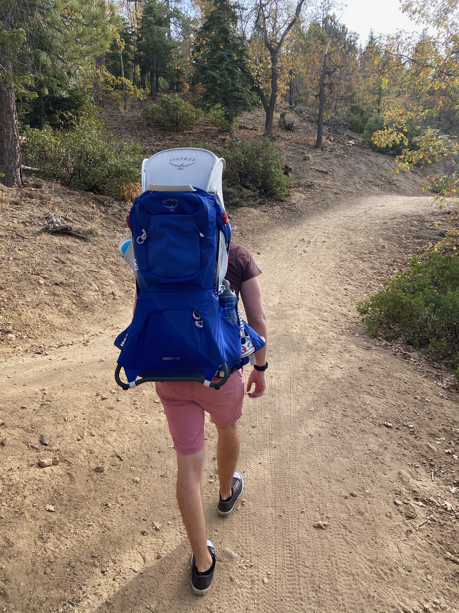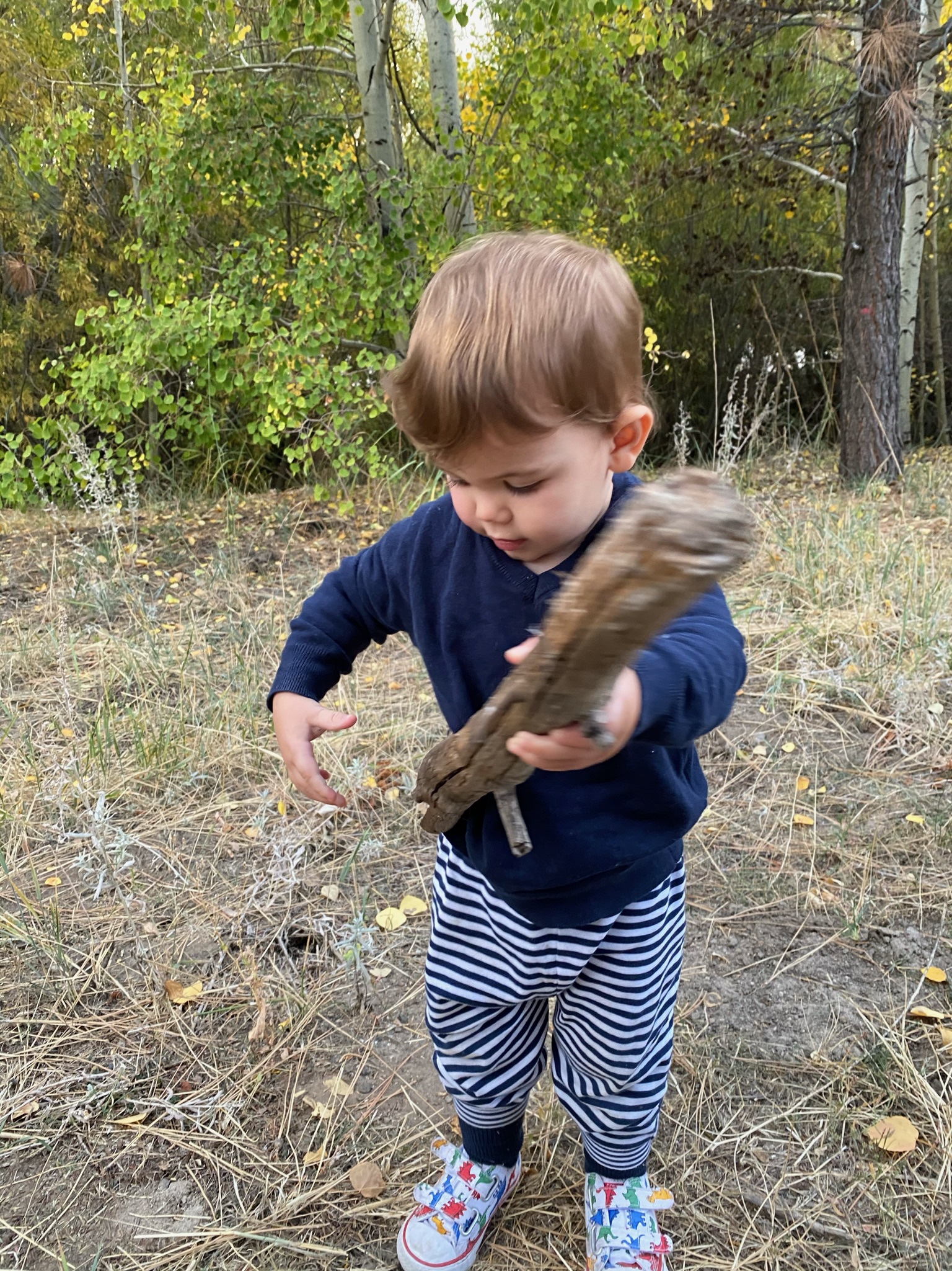 Une super promenade pendant laquelle Gabriel a même marché, motivé par le fait de trouver des pommes de pin sur la route!
