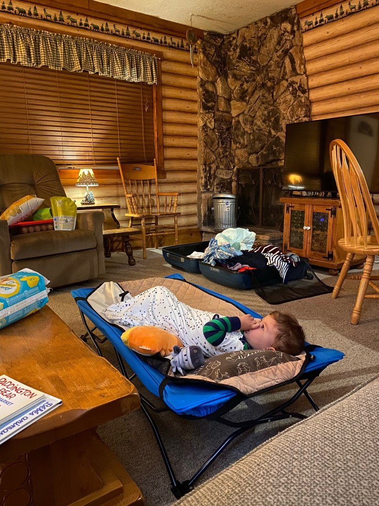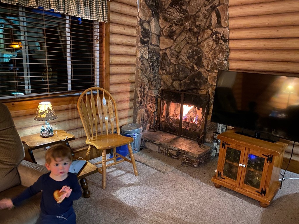 Après 2h40 de route, nous arrivons dans un froid glacial! Nous avons quitté San Diego sous la chaleur automnale d’une fin d’après- midi normale en short et t shirt et nous arrivons vers 20h en pleine montagne après le couché du soleil! Quelle différence! Le trajet a été quelque peu mouvementé avec Gabriel qui a eu des nausées… 😏😏😏