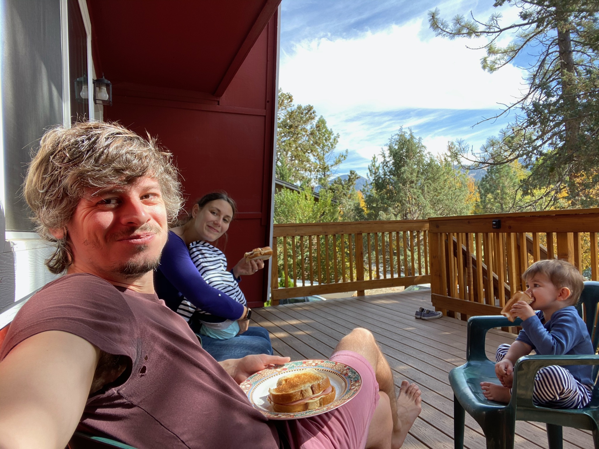 Eléonore n’est pas en très grande forme et pleure beaucoup donc nous décidons de rester tranquillement à la maison le matin pour se reposer et lui laisser l’occasion de faire une sieste pendant que nous profitons de la terrasse et du paysage!